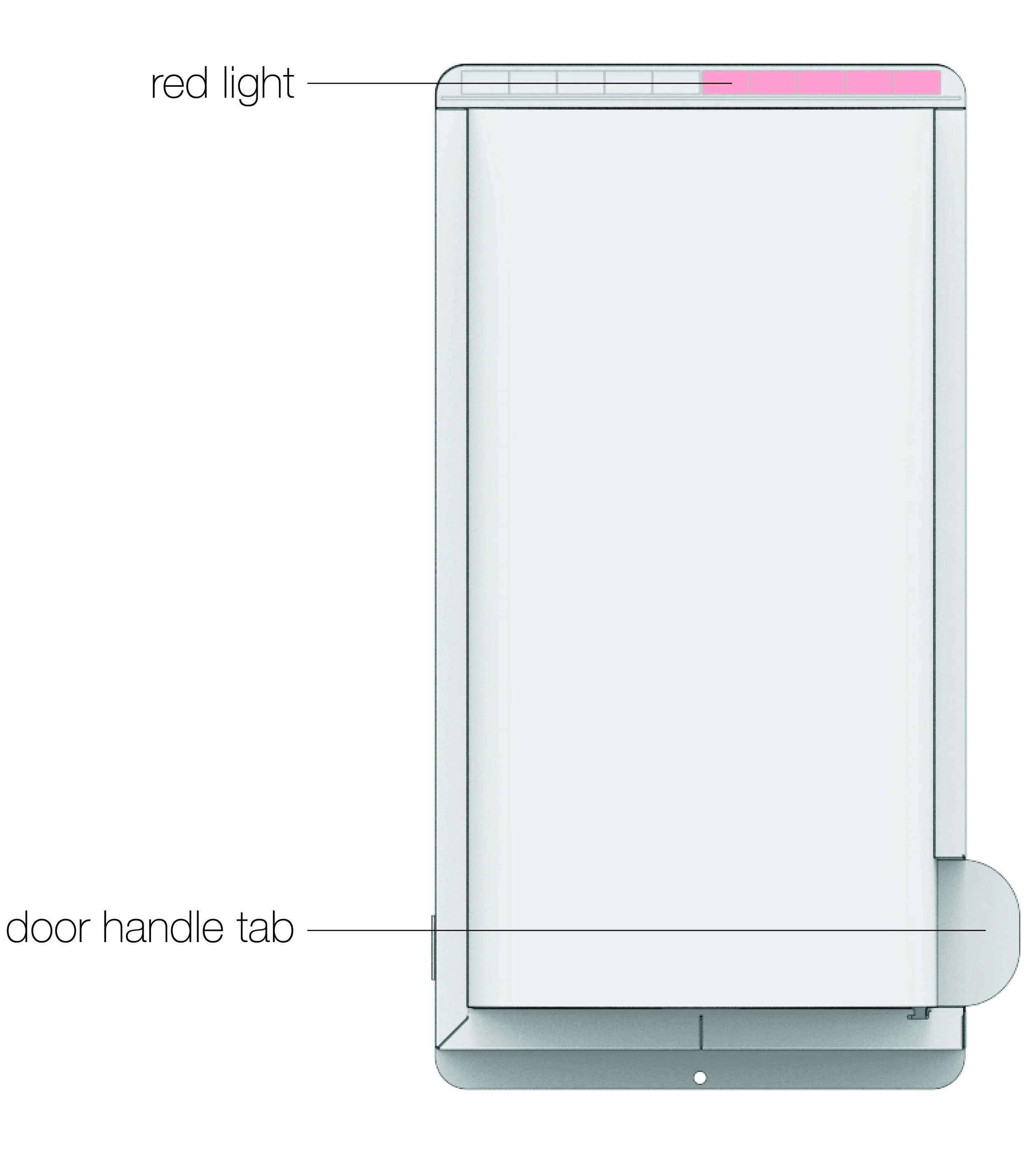 Once the door has been properly closed, the green lights will turn off, and red lights will appear at the top of the device, indicating the cleaning cycle has begun. The red lights will remain illuminated during the entire cleaning cycle. Approximately 40 seconds.