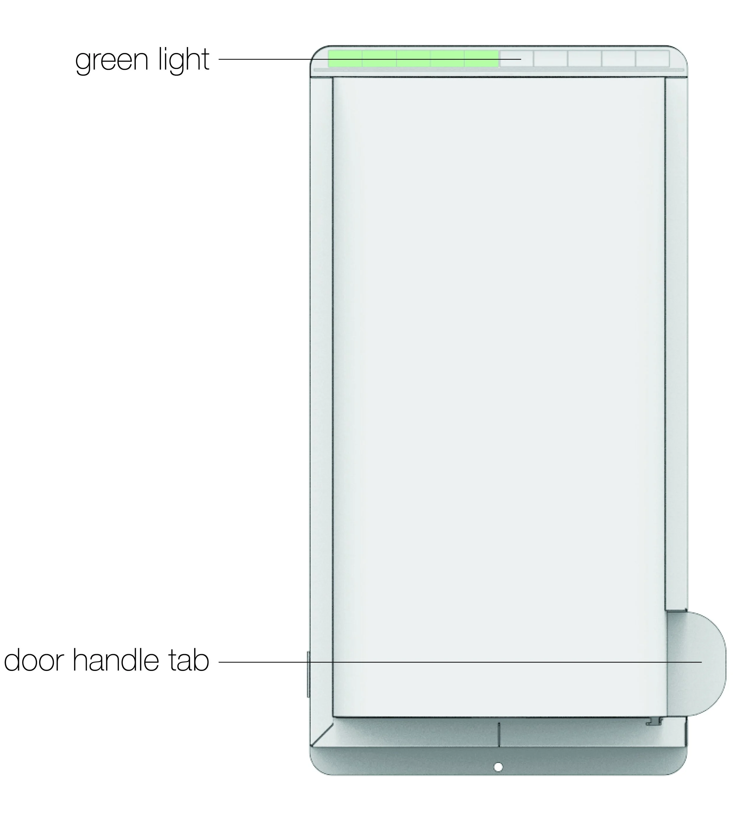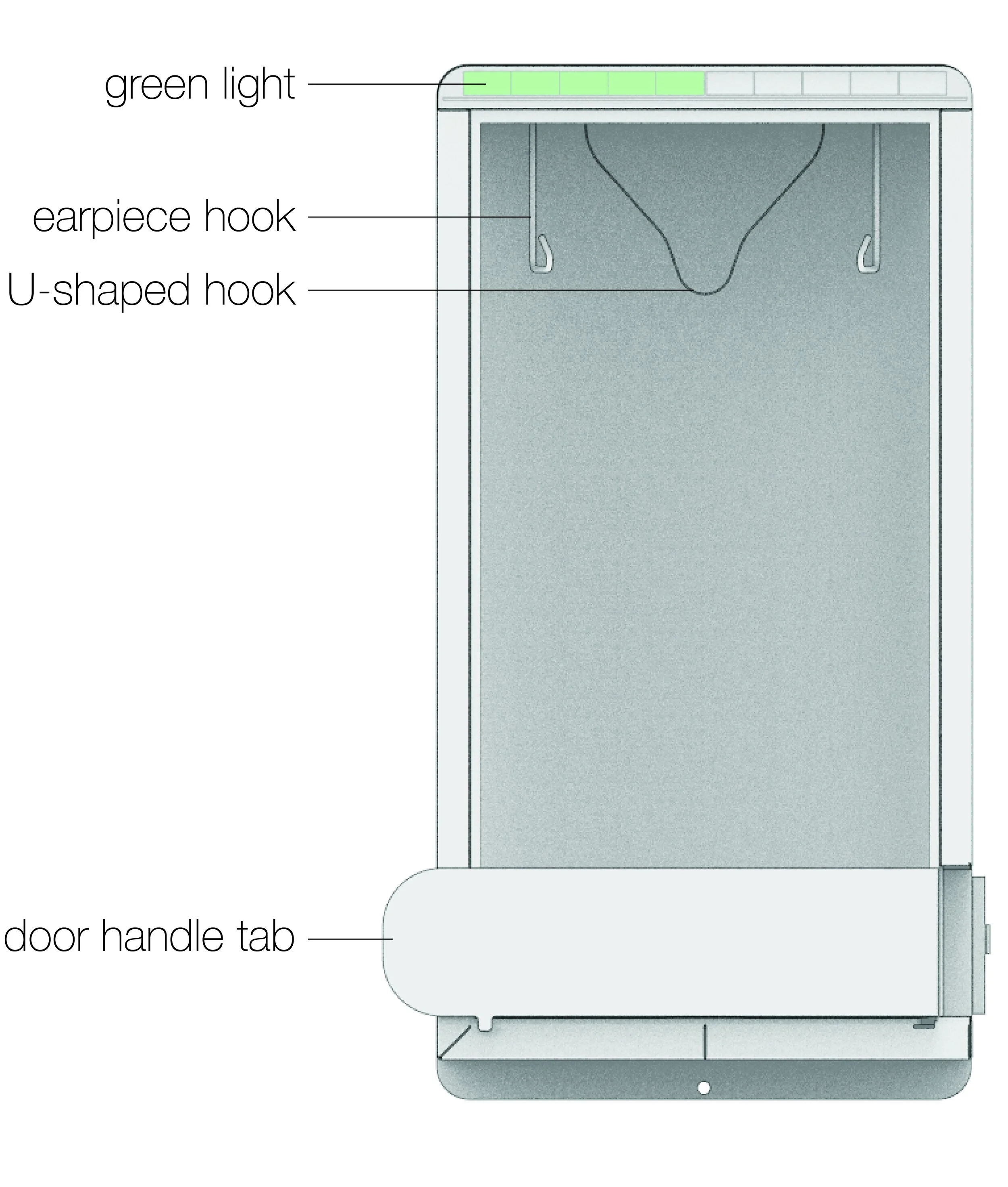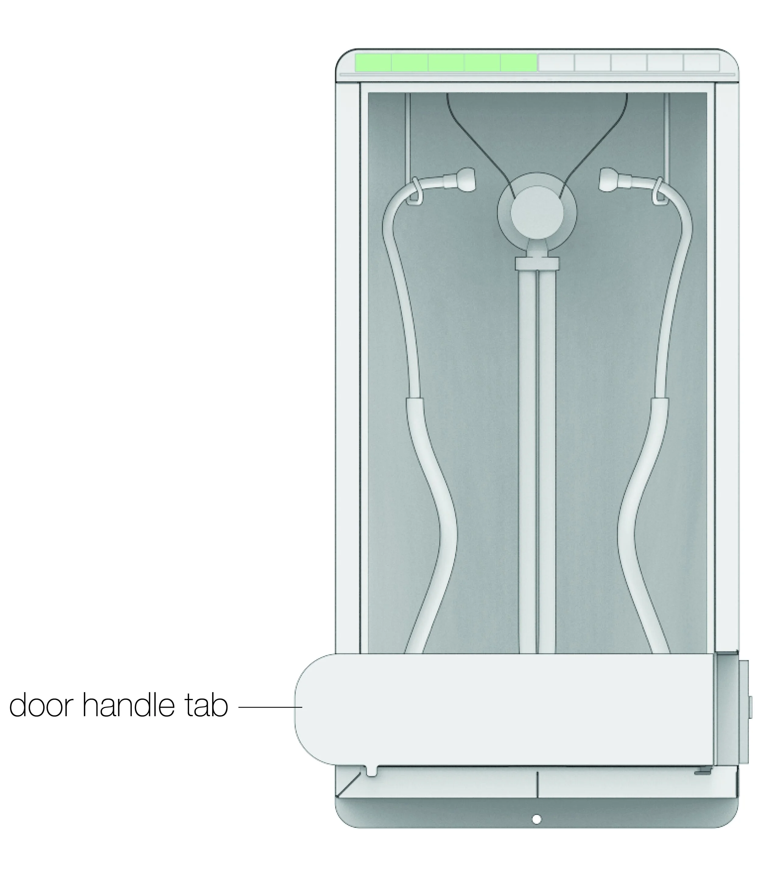 Once the cleaning cycle has ended, the red lights will turn off and the green lights will turn on, indicating that you may now open the door to retrieve the stethoscope.
